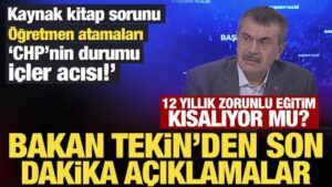 Kanal 7 Genel Yayın Yönetmeni Mehmet Acet’in sorularını yanıtlayan Bakan Tekin, değişmesi beklenen 12 yıllık zorunlu eğitim sistemine ilişkin, “Raporumuzu oluşturduk. Bunu Kabine Toplantısı’nda Cumhurbaşkanımızın da onayına sunacağız” dedi.